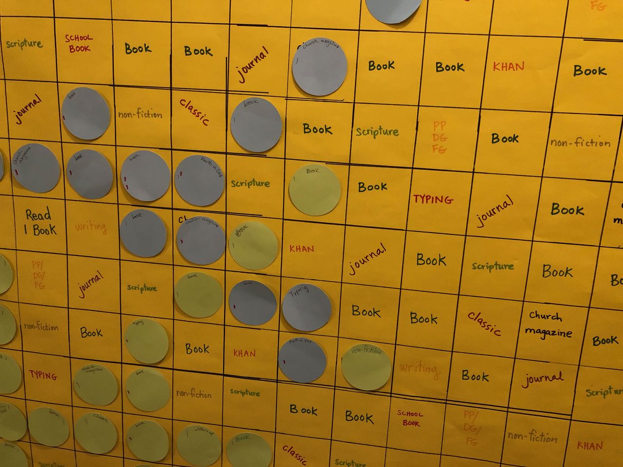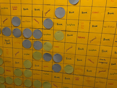 You choose what you want to encourage your kids to do. My sister chose for each of her squares to be earned after 1 hour, and chose some different genres to put on the grid.